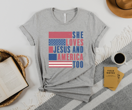 SHE LOVES JESUS AND AMERICA TEE